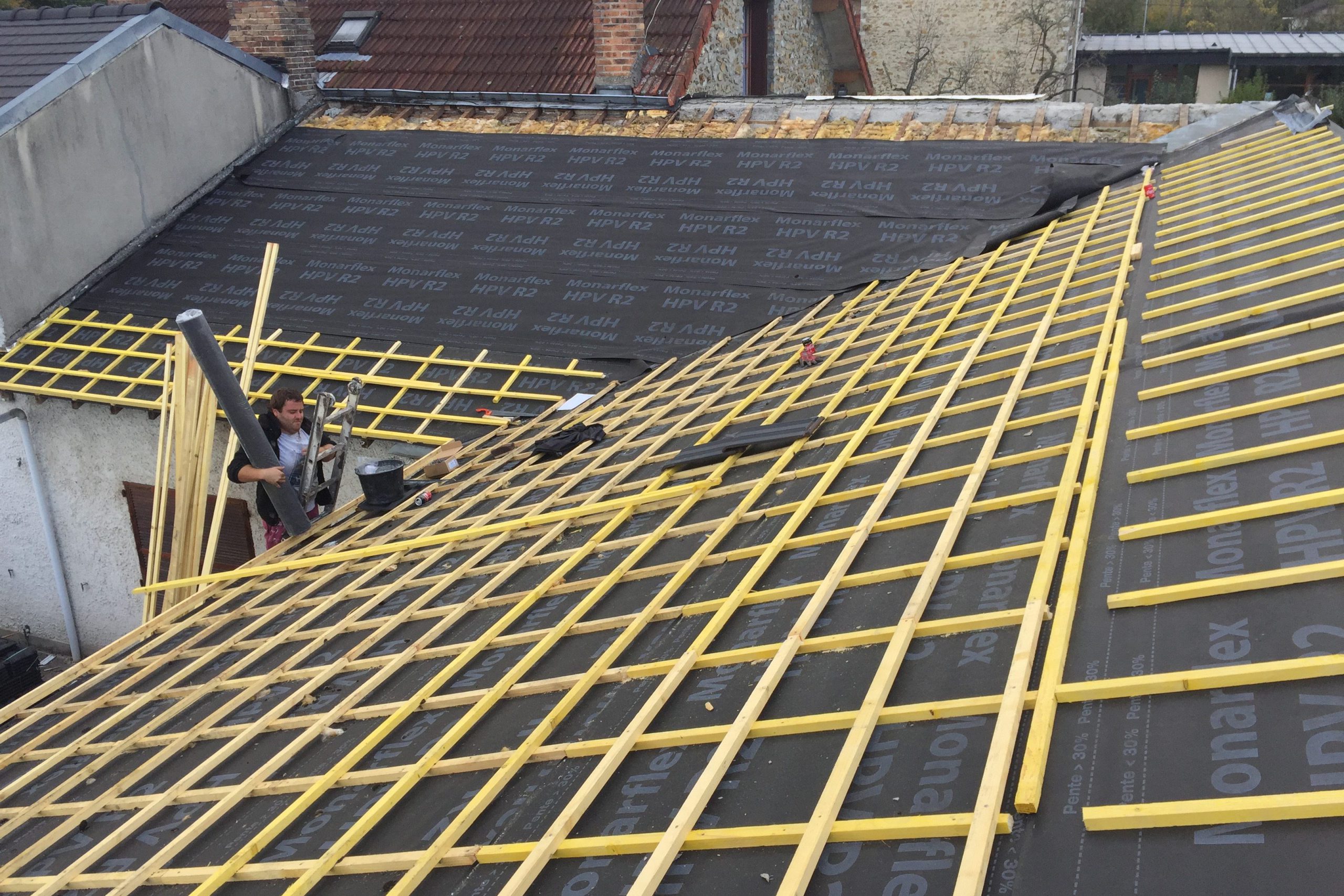 (tuiles, ardoises, zinc, bacs acier), la pose de charpente,